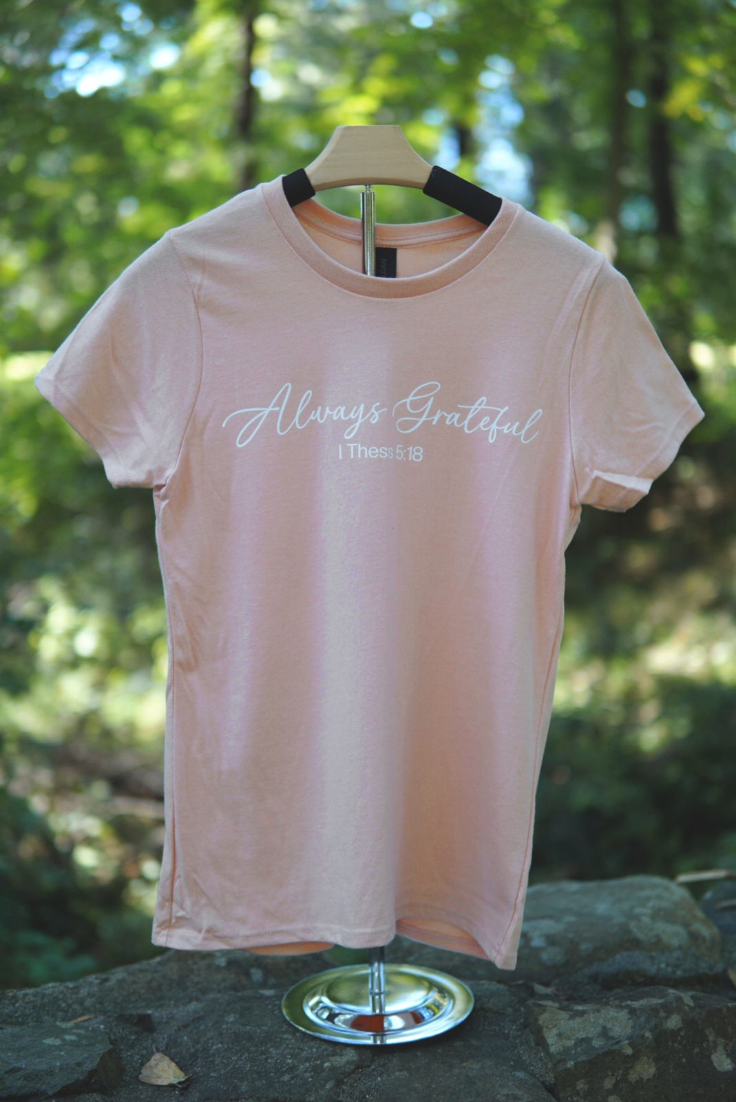 Pre-order: Always Grateful - Script - Women's Cut - Gildan Crew Neck T-Shirts